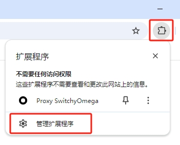 1、打开浏览器右上角的插件栏 → 点击“管理扩展程序”。