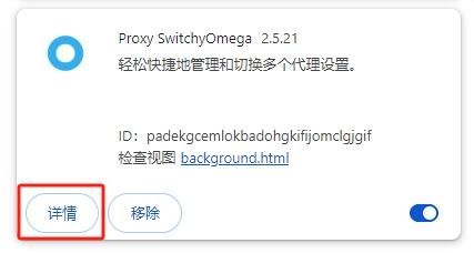 2、找到插件“SwitchyOmega” → 点击“详情”。