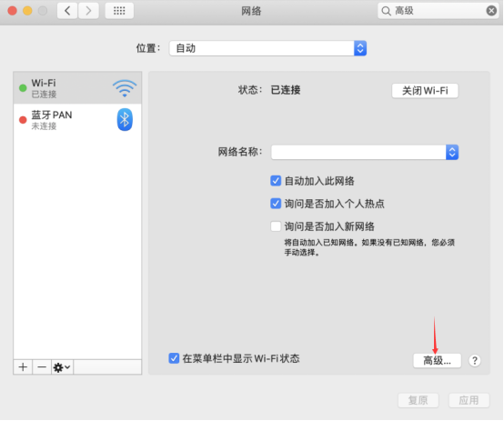 2. 打开“网络”→点击“高级”